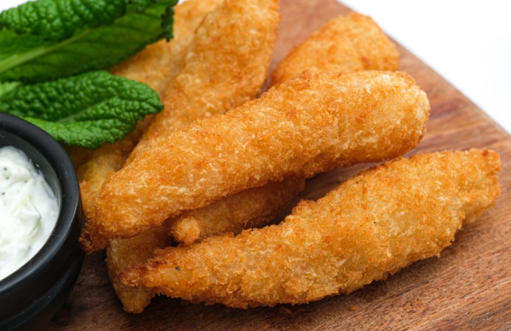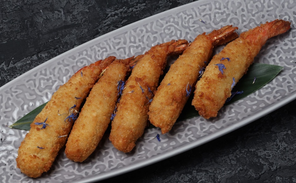 Креветки, соль, кляр, сухари панировочные. Соус на выбор: барбекю, сырно-чесночный, тартар, цезарь, кетчуп, арахисовый чили