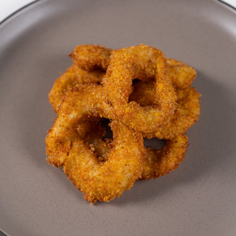 Кольца кальмара в хрустящей панировке, обжаренные во фритюре. Соус на выбор: барбекю, сырно-чесночный, тартар, цезарь, кетчуп, арахисовый чили
