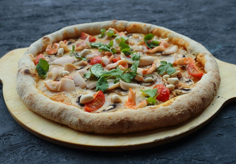 С кальмаром и креветкой пицца