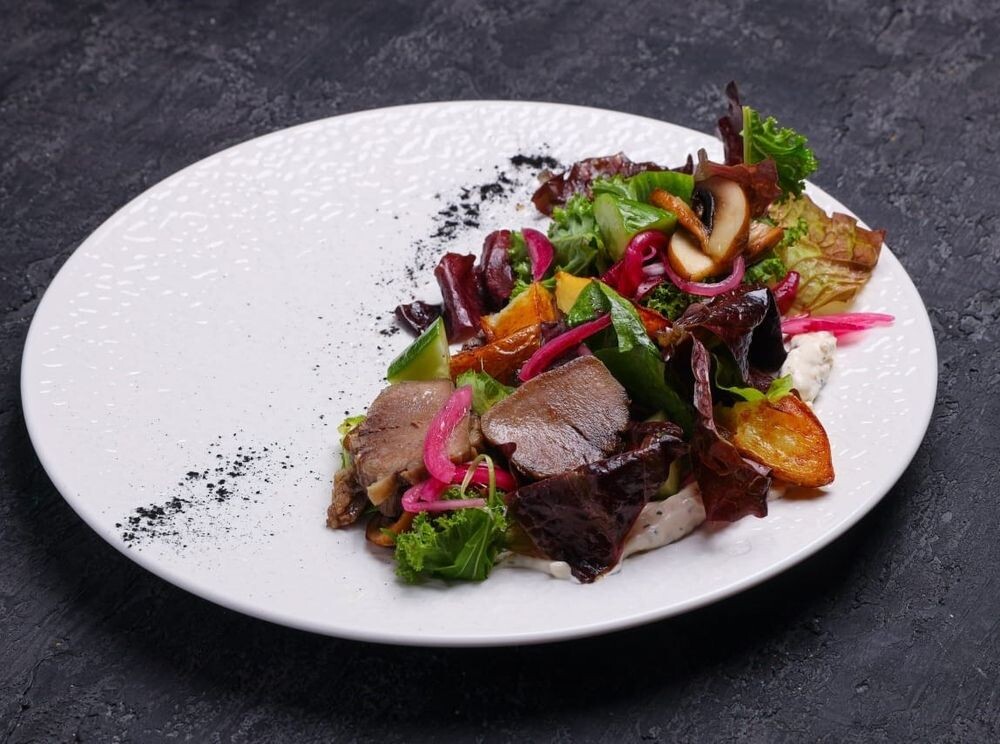 Салат с обжаренным языком