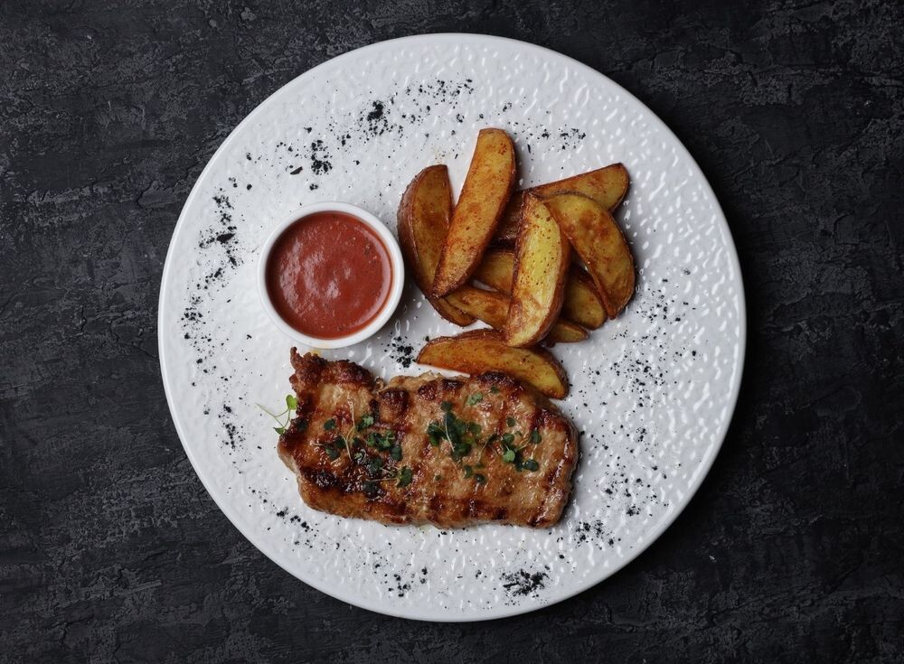 Отбивная из свиного карбоната с картофелем "Айдахо" и соусом сальса